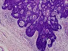 - ↑ Cole P, Kaufman Y, Dishop M, Hatef DA, Hollier L (October 2008). "Giant, congenital folliculosebaceous cystic hamartoma: a case against a pathogenetic relationship with trichofolliculoma". Am J Dermatopathol. 30 (5): 500–3. doi:10.1097/DAD.0b013e318183eb07. PMID 18806500.