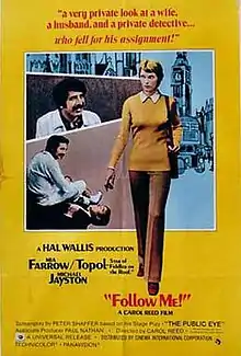Follow Me! is a 1972 British comedy-drama film directed by Carol Reed and starring Mia Farrow, Topol and Michael Jayston. Adapted by Peter Shaffer from his own play (The Public Eye), the picture marks Carol Reed's last completed film.