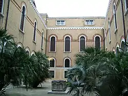 It was described by Augustus Hare in the 19th century as "a Byzantine palace of the 9th century, and one of the earliest buildings, not ecclesiastical, in Venice. .... A few years ago it was one of the most unique and curious buildings in Europe, and the most important specimen of Italo-Byzantine architecture, but it was modernised and almost rebuilt by the ... government in 1869".[1]