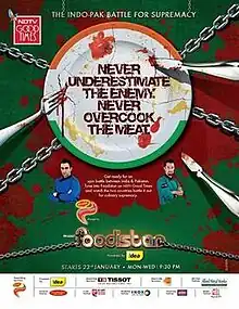 Foodistan is a television cooking game show. It is produced by BIG Synergy for NDTV Good Times and Geo Entertainment. The show puts India and Pakistan's best chefs against each other in a competition. While their individual cuisines are similar,[2] there are differences between the two cuisines. The show aired 26 episodes. The finale was between Manish Mehrotra from India and Poppy Agha from Pakistan; Manish Mehrotra walked away with the title of Foodistan.[3]