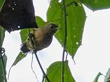 The foothill stipplethroat (Epinecrophylla spodionota), previously called the foothill antwren[2], is a species of bird in subfamily Thamnophilinae of family Thamnophilidae, the "typical antbirds". It is found in Colombia, Ecuador, and Peru.[3]
