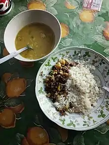 ![]() Biran bhaat & Forashor Dail, a traditional Sylheti breakfast | |