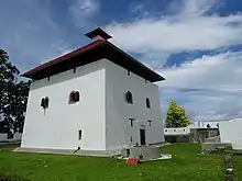 The blockhouse is surrounded by a square-shaped defensive wall measuring 52 x 52 m. There are remnants of wall foundation measuring 62 x 35 m. The main gate is on the east side, while two smaller doorless gates is located to the north and to the south.