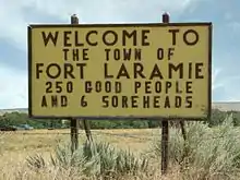 Fort Laramie is a town in Goshen County, Wyoming, United States. The population was 230 at the 2010 census. The town is named after historic Fort Laramie, an important stop on the Oregon, California and Mormon trails, as well as a staging point for various military excursions and treaty signings. The old fort was located south of town across the North Platte River, at the mouth of the Laramie River.