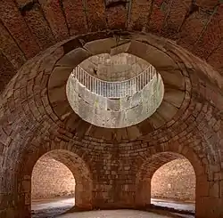 An 1890 modernization suppressed the casemates and replaced caponiers with counterscarps. Further modernizations saw the installation of electricity, three armored observation posts and detail improvements.[1] More substantial changes, including the proposed installation of a 75mm gun turret were not carried out, but a shelter or abri-caverne for 100 soldiers was excavated. Portions of the fort were reinforced with concrete against shellfire during the First World War.[2]