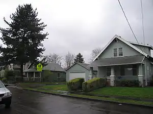 It is likely that much of the construction in the Foster-Powell Neighborhood followed the construction of Portland's original electric streetcar line in the 1890s.[2] The neighborhood's sidewalks were constructed in 1912.[3] On November 10, 2009 the southeast wing of Foster-Powell's Marysville Elementary School burned down in what was attributed to an electrical fire.[4]