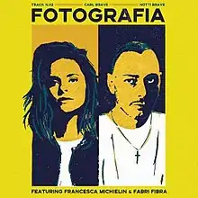 "Fotografia" is a song by Italian recording artist Carl Brave, featuring vocals by singer Francesca Michielin and rapper Fabri Fibra. It was co-written by the song's three performing artists, and produced by Carl Brave.[1][2] The song was released on 11 May 2018 as the lead single from Carl Brave's debut solo studio album, Notti brave.[3][4] After peaking at number 6 on the Italian FIMI singles chart, "Fotografia" was certified triple platinum in Italy.