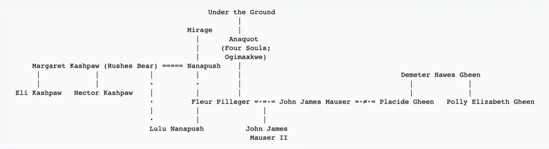 • Fleur Pillager: The main protagonist and an Ojibwe woman. She takes on the name of her late mother, Four Souls, while in pursuit of revenge on the man that stole her land.