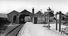 In 1879 an enlarged station was built, designed by the Lancaster architects Paley and Austin and built by the Barrow contractor William Ormandy. The island platform was widened to 29 feet (9 m), and a new canopy for passengers was provided.[3]
