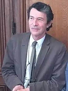 In August 2019, he announces his candidacy for the 2020 municipal elections in Cambrai.[20] His list wins in the first round with 56.3% of the vote against six other lists.[21] He is re-elected mayor by the municipal council on May 24, 2020.[22][23] On July 15, he ran for the presidency of the CAC, winning by a narrow margin over dissident Marjorie Gosselet (48 votes to 44).[24] At the same time, he withdrew the delegations of three vice-presidents supported by Gosselet.[25] The following year, he resigned from the presidency of the intermunicipality.[26]