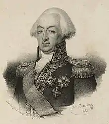François Étienne de Rosily-Mesros (13 January 1748, Brest – 12 November 1832, Paris) was a French naval commander of the French Revolutionary Wars and Napoleonic Wars. He is notable as being chosen by Napoleon to succeed Villeneuve as commander of the combined Franco-Spanish fleet at Cádiz, arriving to take up his appointment just after its defeat at Trafalgar. His name is inscribed on the east side of the Arc de Triomphe.