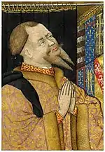 In 1443, Le Ferron was pursuing his career at the royal court as Treasurer of France and advisor to King Charles VII of France.[14] - ↑ In 1441, Admiral Prigent de Coëtivy married Marie, Rais' daughter.[15][16] Now the new Baron de Retz, Coëtivy supported several lawsuits to claim his wife's inheritance, in other words, the lands that had belonged to his late father-in-law.[17]