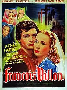 François Villon is a 1945 French historical drama film directed by André Zwoboda and starring Serge Reggiani, Jean-Roger Caussimon and Henri Crémieux. It portrays the life of the fifteenth century writer François Villon.[1] The film was inspired by the play If I Were King by Justin Huntly McCarthy.