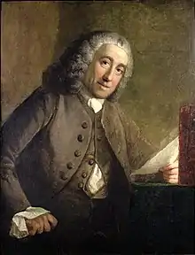 Francis Fauquier (1703 – 3 March 1768) was a British colonial administrator who served as the lieutenant governor of Virginia from 1758 to 1768. Born in England to a Huguenot family, he emigrated to the British colony of Virginia to take up of the office of lieutenant governor. A teacher and close friend of Thomas Jefferson, Fauquier frequently hosted lavish parties for the American gentry as governor.[1]
