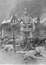 Melgar's works which stirred most controversy are his pro-Entente pamphlets from 1916 to 1917, mostly En desgravio, La mentira anónima and La gran víctima.[171] Written with partisan zeal and propagating all sorts of calumnies against the Central Powers, they turned many Carlists against Melgar,[172] though it is not clear how many Spaniards they won for the cause of the Allies. They were certainly noted abroad; the British New Statesman acknowledged them as "amazing pamphlets".[173] Today they are considered "classic example of the surrender of objectivity" and virulent propaganda.[174]