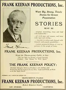 Frank Keenan (born James Francis Keenan;[1] April 8, 1858 – February 24, 1929) was an American stage and film actor and stage director and manager during the silent-film era. He was among the first stage actors to star in Hollywood, and he pursued work in film features for a number of years.