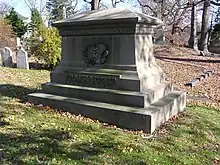 Frank Leslie accepted his last illustration (by Georgina A. Davis) in January 1880[9] and died the same month, the debts amounted to $300,000, and his will was contested. Miriam Leslie took the business in hand and put it on a paying basis, even going so far as to having her name legally changed to Frank Leslie in June 1881.[7] She was a notable feminist and author in her own right. Both his and her remains are interred at Woodlawn Cemetery in The Bronx, New York City.