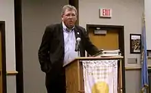 Oklahoma Congressman Frank Lucas speaks at a town hall meeting held in the Pioneer Technology Center in Ponca City, Oklahoma on September 26, 2011.