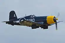 A FG-1D Corsair that was formerly owned by Tallman. He acquired the aircraft in 1959 from the salvage yard of an aluminium smelting company.[2]