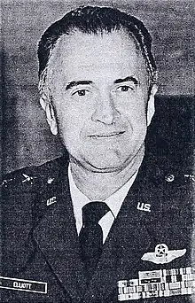 Frank Worth Elliott Jr. (December 2, 1924 – October 20, 1997)[1] was a major general in the United States Air Force. General Elliott served in World War II as the captain of a B-24 Liberator, commander of the 14th Strategic Aerospace Division, and commander of Chanute Air Force Base[2] in Rantoul, Illinois. Elliott also held the distinction of having piloted the SR-71 Blackbird.[3]