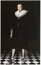 Frans Banninck Cocq, who seems to have had one deaf brother[8] studied law in Poitiers and Bourges between 1625 and 1627.[9] In 1630 he married Maria Overlander van Purmerland, daughter of knight Volkert Overlander, merchant, one of the founders of the Dutch East Trading Company, a few times burgemeester of Amsterdam and Lord of Purmerland and Ilpendam. One of her sisters, Geertruid Overlander van Purmerland (1609–1634), was married to statesman and Amsterdam burgomaster Cornelis de Graeff.[10]