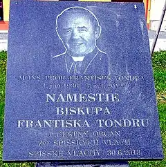 Memorial plaque to Tondra in Spišské Vlachy at the town square bearing his name