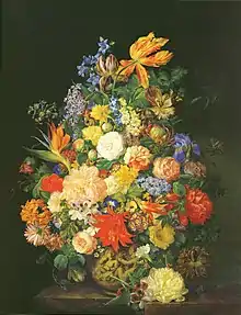 Franz Xaver Petter was one of the most important still-life artists of the Biedermeier period in Vienna. He specialised in floral arrangements, and later arrangements of fruit, and landscapes with flowers, continuing the Dutch Golden Age flower still life depicting traditions. Petter's pictures were very popular with the Austrian nobility.