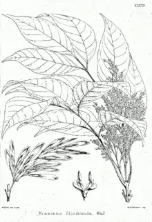 - 1 2 Flora of China, v 15 p 276, Fraxinus floribunda