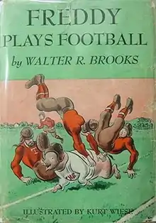 Freddy Plays Football (1949) is the 16th book in the humorous children's series Freddy the Pig written by American author Walter R. Brooks, and illustrated by Kurt Wiese. In it, Freddy and the Bean animals try to convince the Beans that Mrs. Bean’s long lost brother is a fake. Freddy lands in jail for stealing the money the fake is attempting to take. In the meanwhile Centerboro is taken with football fever on account of Freddy's playing.