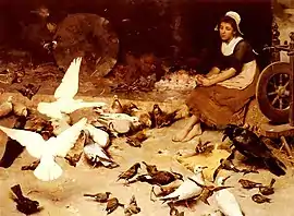 His later work exhibits a more mellow air and suggestions of the influence of George Clausen and H. H. La Thangue in the tints used.[7]
