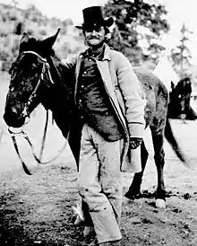 Frederick Wadsworth Loring, in his campaign costume, with his mule "Evil Merodach". Taken about 48 hours before the Wickenburg massacre