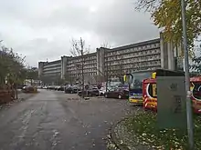 The area was separated from the rest of the campus when Thorvaldsensvej was extended. The area was originally part of KVL's botanical gardens. The central 7-storey building is colloquially known as "The Highrise" (Danish: Højhuset) on the otherwise flat campus. It was built between 1963 and 1971 to design by Steen Eiler Rasmussen and Mogens Koch.[2] A new building on Rolighedsvej (No. 30) was completed in 1995 to design my Erik Møllers Arkitekter. The Department of Food Science is based in the building.[3] Next to it is another modern building (Rolighedsvej 26) which was completed in 2013 to design by Wiberg Arkitekter and Witraz/Rambøll, arkitekter. It is also used by the Department of Food Science.[4]