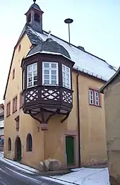 • Rathausstraße 9 – town hall; Renaissance building with ground-floor hall, timber-frame oriel window, marked 1603
