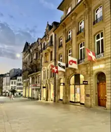 Freie Strasse is the oldest shopping street in the city of Basel, Switzerland. It was already used as a transportation and trade route towards the west during the time of the Roman settlement in Augusta Raurica around 44 BC. Today, it is considered one of the most important shopping streets in the city.[1][2]