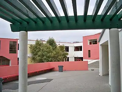 A major project to revamp the school’s campus, started in 2018 and completed in 2020, added an academic building, a football field with grandstands, a gymnasium, and a new front entrance to the school. The $133 million project—largely funded by local bond measure, Measure J—also included renovation to an academic building and addressing sustainability through bioretention planters, additional windows and skylights for more natural lighting, and a pair of electric vehicle chargers.[3]