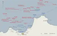 Two days later, Strasbourg and Dunkerque sortied to intercept reported German and Italian ships that were incorrectly reported to be in the area. The French had received faulty intelligence that had indicated that the Germans would attempt to force a group of battleships through the Strait of Gibraltar to strengthen the Italian fleet. After the French fleet got underway, reconnaissance aircraft reported spotting an enemy fleet steaming toward Gibraltar. Supposing the aircraft to have spotted the Italian battle fleet steaming to join the Germans, the French increased speed to intercept them, only to realize that the aircraft had in fact located the French fleet. The fleet then returned to port, marking the end of Strasbourg's last wartime operation.[20] On 22 June, France surrendered to Germany following the Battle of France.[13][21][22] Under the terms of the Armistice, Strasbourg and Dunkerque would remain at Mers-el-Kébir.[23]