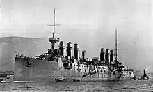 Jeanne d'Arc was an armoured cruiser built for the French Navy (Marine Navale) at the end of the 19th century, the sole ship of her class. Completed in 1903, she was initially assigned to the Northern Squadron (French: Escadre du Nord), although she was transferred to the reserve fleet before the end of the year. The ship was recommissioned for a few months in mid-1905 and was transferred to the Mediterranean Fleet (Escadre de Méditerranée) in mid-1906 and served as a flagship for the next several years. Jeanne d'Arc was assigned to the reserve in mid-1908 and modified to serve as a training ship for naval cadets of the Naval Academy (École Navale). In 1912, she made the first of two lengthy training cruises.