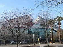 The exterior is post-modern futurist in style and consists of dull-finished stainless steel and glass panels with an angular roofline, meant to evoke the peaks of the nearby Sierra Nevada mountains. The building is five stories in total. The central interior space is the council chamber, but it also houses the mayor's office, the finance department, the public works department, the economic resources department and other offices. The council chamber has public seating with a capacity for 249 people. The chamber also features natural light coming in through a skylight located in the gap between the two peaks.[1][2][3]