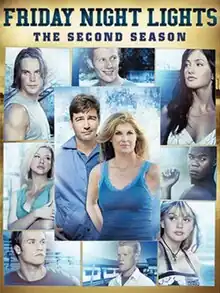 The second season of the American serial drama television series Friday Night Lights commenced airing in the United States and Canada on October 5, 2007, and concluded its 15-episode season on February 8, 2008, on NBC. While initially renewed for a 22-episode full season, the show ended production for the season after filming the 15th episode, due to the 2007–08 Writers Guild of America strike.[1] The series' future was once again placed in doubt as it did not return to production once the strike ended, and it continued to suffer from low ratings in its new Friday at 9:00 pm time slot. However, NBC announced in April 2008 that the show would return for a third season, with first-run broadcasts airing on DirecTV's The 101 Network.[2] The second season was released on DVD in region 1 on April 22, 2008.[3]