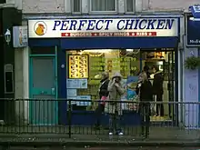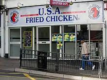 Restaurants are commonplace in inner city areas of the United Kingdom.[1] The United Kingdom has one of the largest, fastest growing and most diverse fried chicken markets in the world, with about 1,000 individual brands and 1,700 outlets.[2] Shop signs are commonly designed in a red, white and blue colour scheme, and include a drawing or cartoon of a chicken, as well as a reference to the Southern United States.[3]