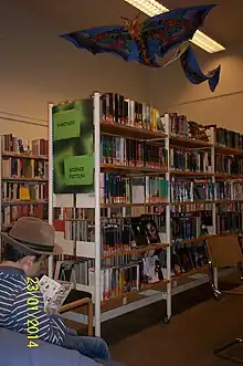 Today the Raumer Library is the biggest of the branch libraries in Friedrichshain-Kreuzberg.[50] The library is active in reading education of children, and offers courses for adults for reading from books.[51] Occasionally the Raumer Library hosts art exhibitions, such as works of the Bildhauerwerkstatt (sculptors' workshop) of the Hector-Peterson-Schule (in 2002[52]) or paintings by Luise Grimm (in 1965 and 1970). The Raumer Library celebrated its 55th anniversary in the current location in 2010 with a little exhibition of photos from the opening in the current building in 1955. Between 27 January to 7 February 2012 the library was closed in order to install devices automatising the circulation procedures.[53]
