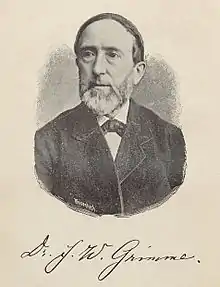 From 1847 he studied philology and theology at the University of Münster, followed by work as a schoolteacher at the gymnasium in Arnsberg. Afterwards he taught classes in Brilon (1854) and at the Paulinum in Münster (1855).[1] From 1856 to 1872 he was a teacher at the Theodorianum in Paderborn, then later relocated to Heiligenstadt as director of the Catholic gymnasium (1872–85).[2][3] Grimme was one of the 56 founding members of the Freies Deutsches Hochstift (Free German Foundation).[4]