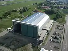 The Messe Friedrichshafen convention center is just north of the airport's runway. The center hosts an annual European general aviation conference AERO Friedrichshafen and other conferences.[4]