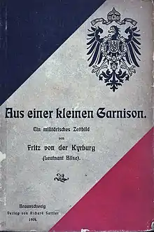 The book, in which Bilse satirizes the manners of the Forbach garrison and of the Prussian army in general, became a succès de scandale and was soon reprinted many times. Bilse's criticism, however, was so sharp, and the location and protagonists so little disguised, that several officers who felt their honour to be under attack prosecuted Bilse in a court-martial, the trial taking place at Metz from 9. to 13. November 1903. Bilse was found guilty of defamation of character, was discharged from the army dishonourably, and sentenced to six months' imprisonment. His novel was (temporarily) banned.[1]