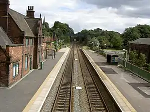 Frodsham railway station serves the town of Frodsham, Cheshire, England. The station is managed by Transport for Wales. It was opened along with the line in 1850 and the station building is recorded in the National Heritage List for England as a designated Grade II listed building.[1] This was restored in 2012 and is in private ownership.