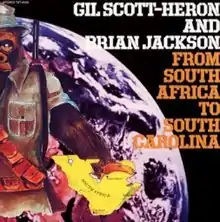 From South Africa to South Carolina is a studio album by the American vocalist Gil Scott-Heron and the keyboardist Brian Jackson.[6][7] It was released in November 1975 by Arista Records.[8] Scott-Heron performed "Johannesburg" and "A Lovely Day" on Saturday Night Live in December 1975.[9] The album was reissued in the late 1990s via Scott-Heron's Rumal-Gia label, distributed by TVT Records.[10]
