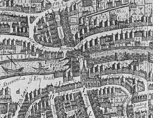 By modern standards, medieval people were not coy about sex. Bristol, for instance, had both a 'Whores Street' and a 'Grope Cunt Lane',[5] both of which lay in the centre of the city, near the Quay Head.[6] Medieval 'Horstrete' or 'Hoorstrete' was later rendered as 'Horse Street', before being changed to 'Host Street', which it is still known by. The latter appears to be a euphemistic reference to the profession of those who worked on the street. Medieval 'Gropecount Lane', was later contracted to 'Grope Lane', or 'Grape Lane'. In the late seventeenth century it was redesignated 'Hallier's Lane', before finally being renamed 'Nelson Street' in the nineteenth century in honour Admiral Lord Nelson, following his death at the Battle of Trafalgar.[7]
