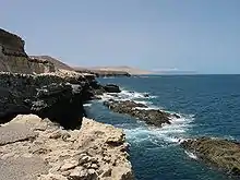 Fuerteventura (Spanish: [ˌfweɾteβenˈtuɾa]) is one of the Canary Islands, in the Atlantic Ocean, part of the North Africa region, and politically part of Spain. It is located 97 km (60 mi) away from the northwestern coast of Africa. The island was declared a biosphere reserve by UNESCO in 2009.