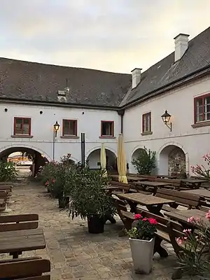 The history of the Fuhrmannhaus can be sourced back to the 17th century by a stair railing from the year 1687. This railing is part of the reconstruction after the Second Viennese Ottoman siege in 1683. At the site of the house, however, there is also evidence of a Roman watchtower and a medieval settlement, where today's Linzer Straße (Linzer Street) applies as an important transport road to Linz since the 12th century. Furthermore, a barred tiny window from the time before 1500 is still preserved in the courtyard of the building. The Fuhrmannhaus has an art-historically valuable small hall with frescoes from the late 17th century. This hall is currently used for cultural events such as classical concerts and readings. Furthermore, the building accommodates a traditional Viennese wine tavern. In the courtyard art exhibitions and different markets are held, such as farmers' and Christmas markets.
