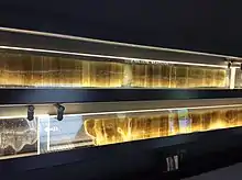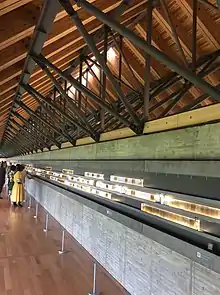 This museum introduces research on the varve in Lake Suigetsu. A thin-sectioned 45 meter-long sample of varve embedded in epoxy is on display.[1] Other exhibitions cover the formation of varve in Lake Suigetsu, varves from around the world, the paleoclimate around Lake Suigetsu decoded from the varve, and other archeoclimatological findings. Some of the exhibitions have QR codes to read explanation. However, at this point, the explanations are given only in Japanese.